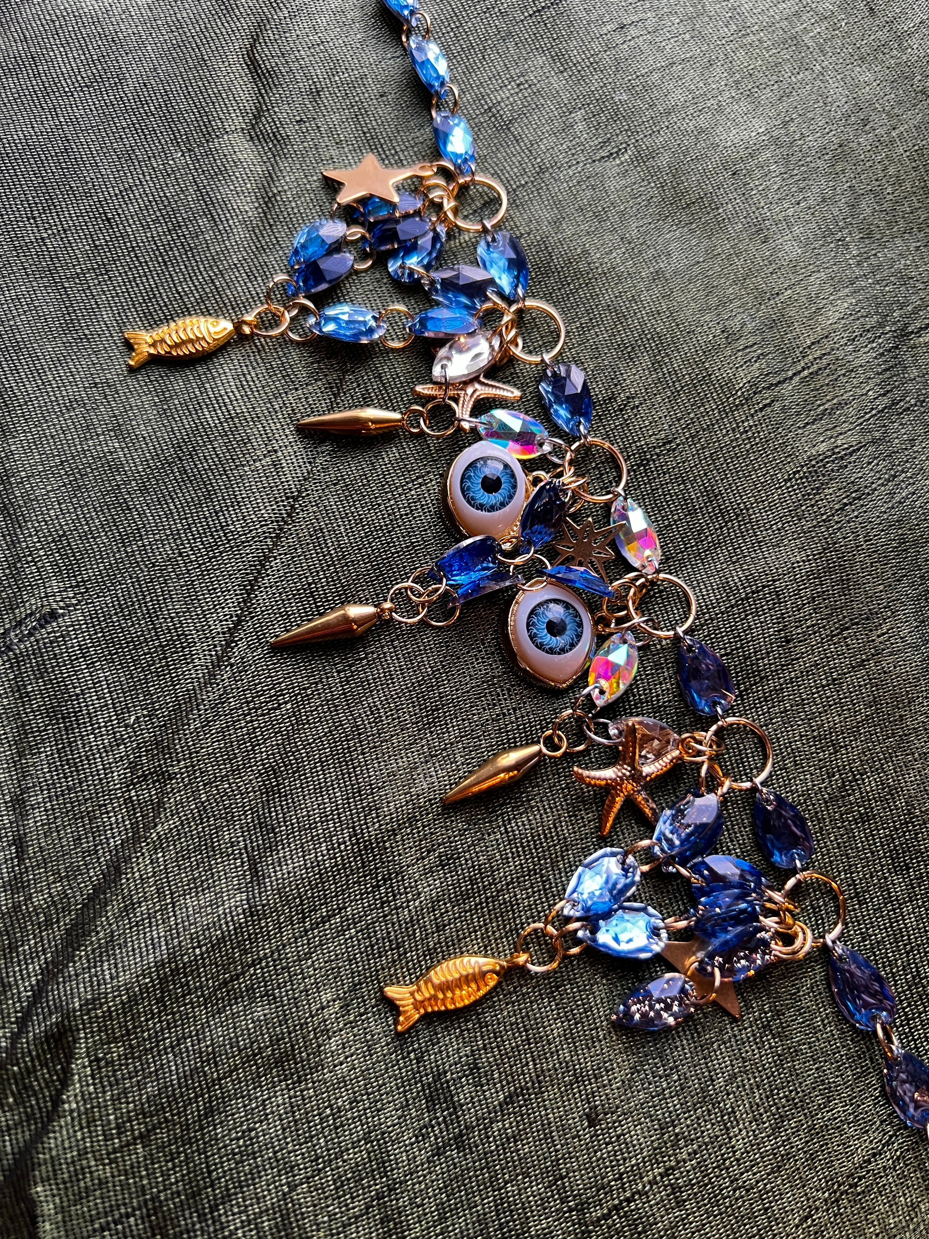 - steel, brass, glass and crystal charms