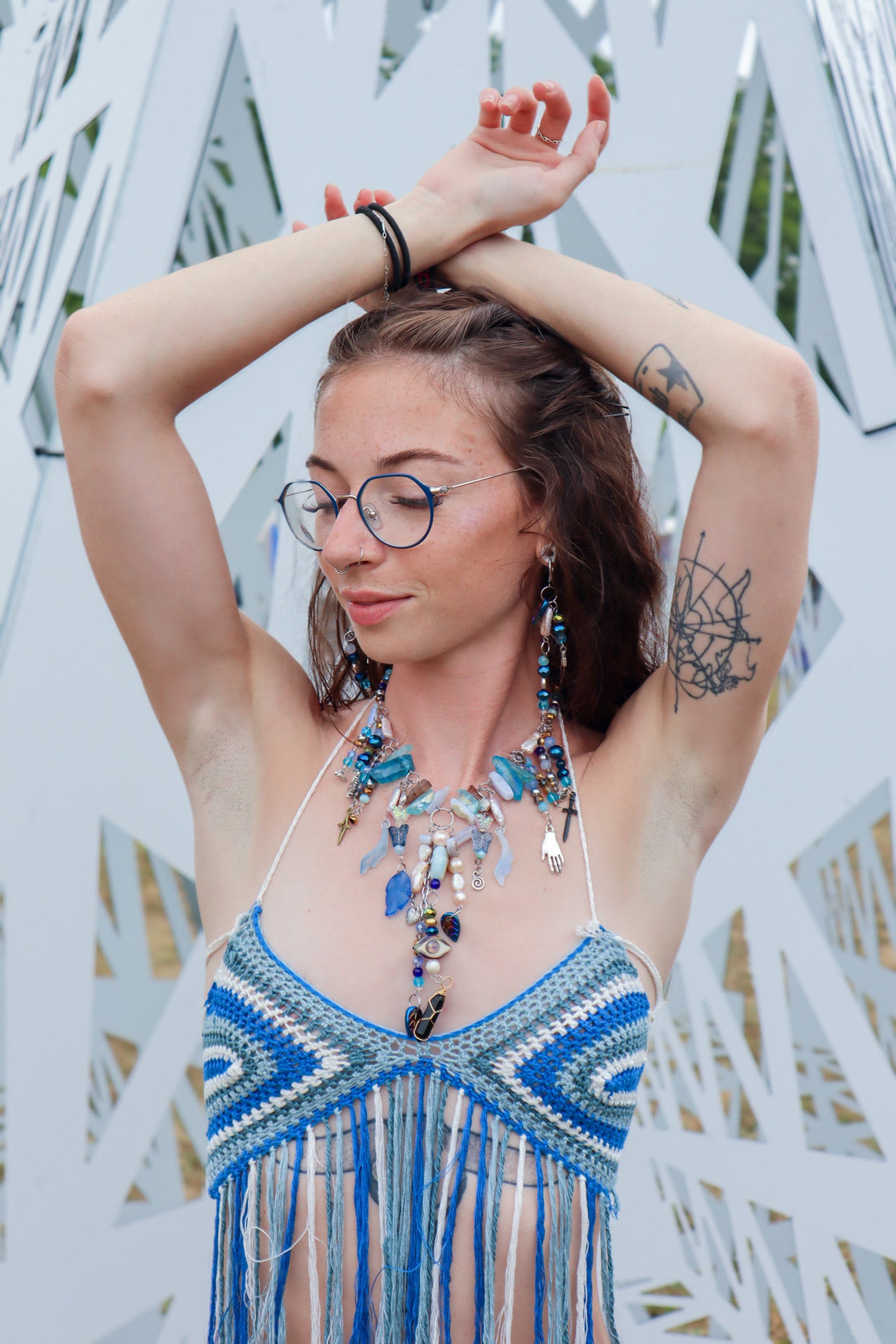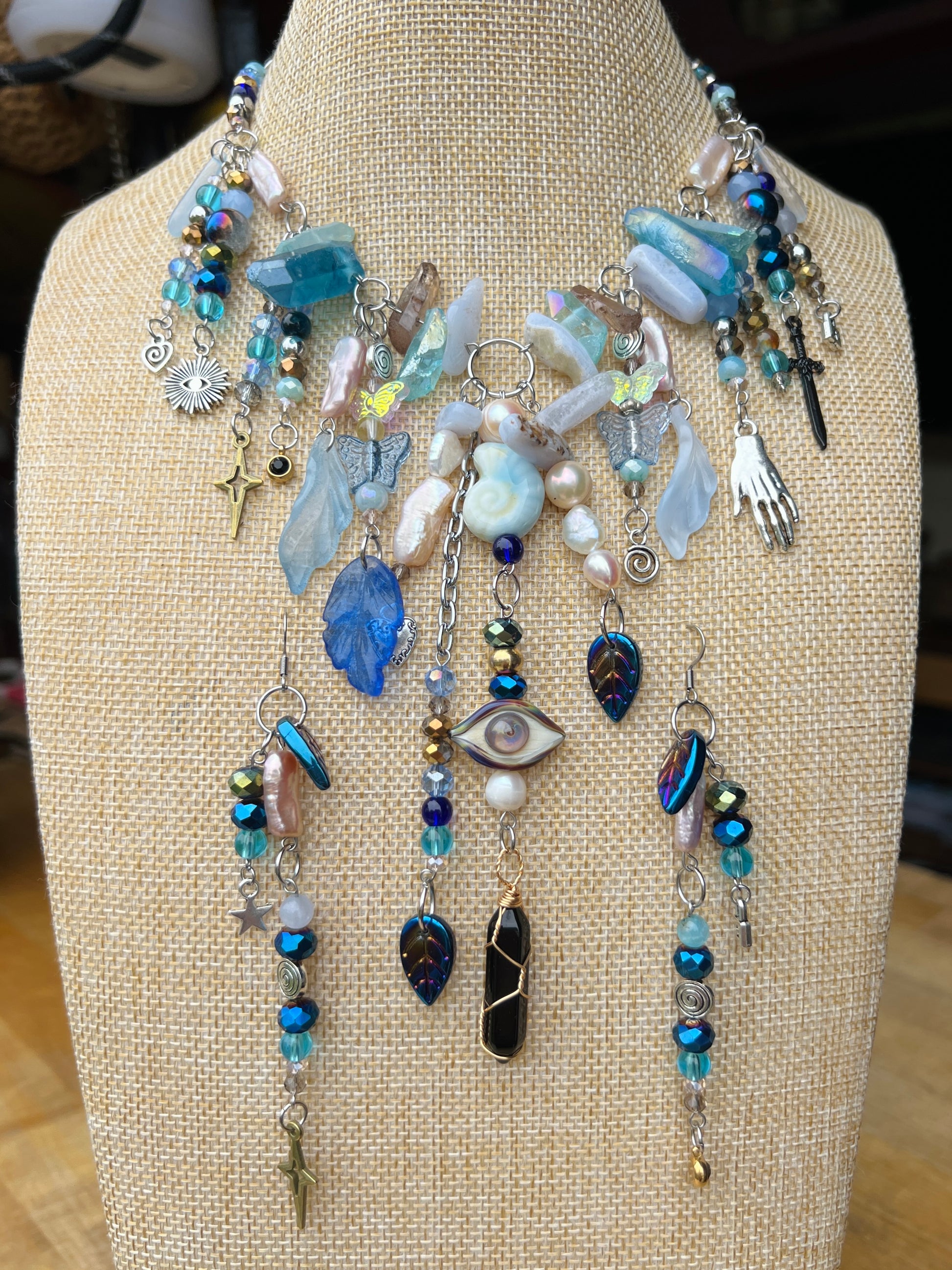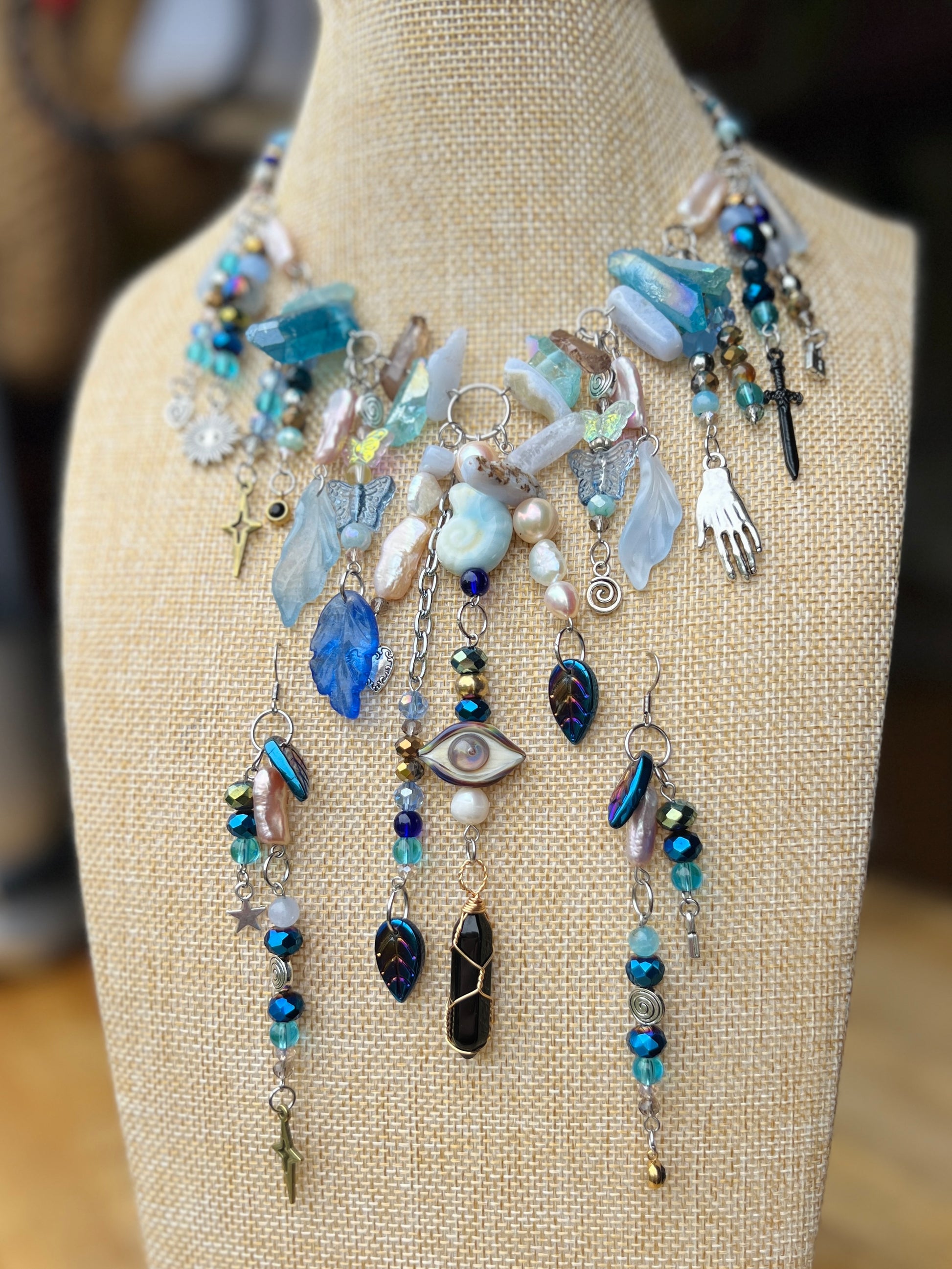 Each piece is unique to your color selection and vibe. Combine up to five aesthetics. It will be made in the pattern you order, pictured on the listing. Sets come with matching earrings. There are no exact replications, only limited edition patterns. Only you will own your version. Due to ever changing materials, each piece may vary in design, color and material selection.